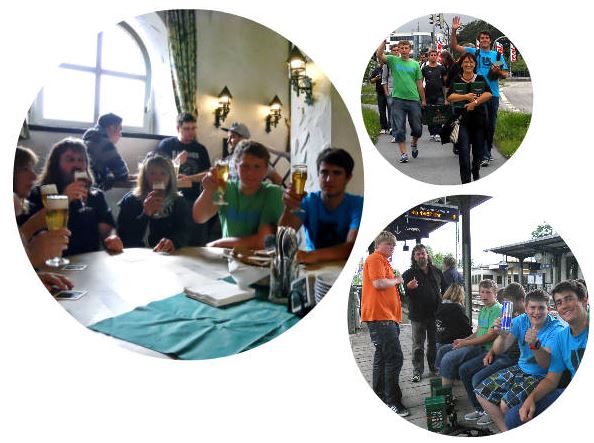 Ganz klar, der Eine hat sich die Frage schon mal gestellt, der Andere nicht. Die Hejner Kerweborsch wollten es wissen und fuhren gemeinsam zu ihrer "Pungschter" Brauerei, um von deren Braumeister vor Ort zu erfahren, was dahintersteckt.Wohlweislich, dass eventuell das eine oder andere Gläschen gelehrt werden könnte, hatten wir die Reise mit den öffentlichen Verkehrsmitteln angetreten. Dabei testeten wir auch die neue Strecke "Ewwerscht - Pungscht" und mussten feststellen: "Sauber, ein nagelneuer Zug mit einem netten Schaffner, der gerade einmal Zeit hatte zu kontrollieren, bevor wir schon wieder aussteigen mussten."